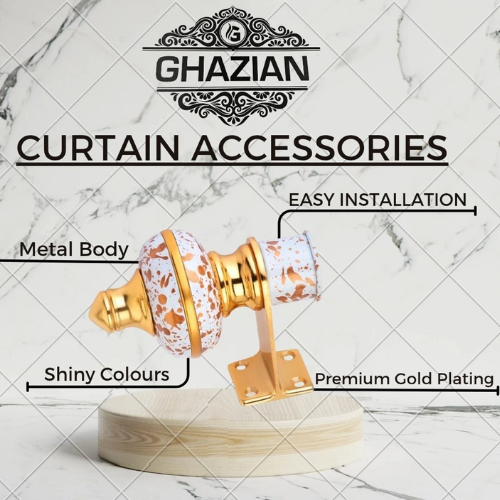 Upgrade your curtain setup with the Ghazian Premium Curtain Rod Bracket. Made from strong aluminium and iron, this heavy-duty bracket provides excellent support for curtain rods. The elegant white and gold extra shine finish adds a clean luxurious touch to your interiors while ensuring durability and stability. Perfect for homes, offices, and commercial spaces.